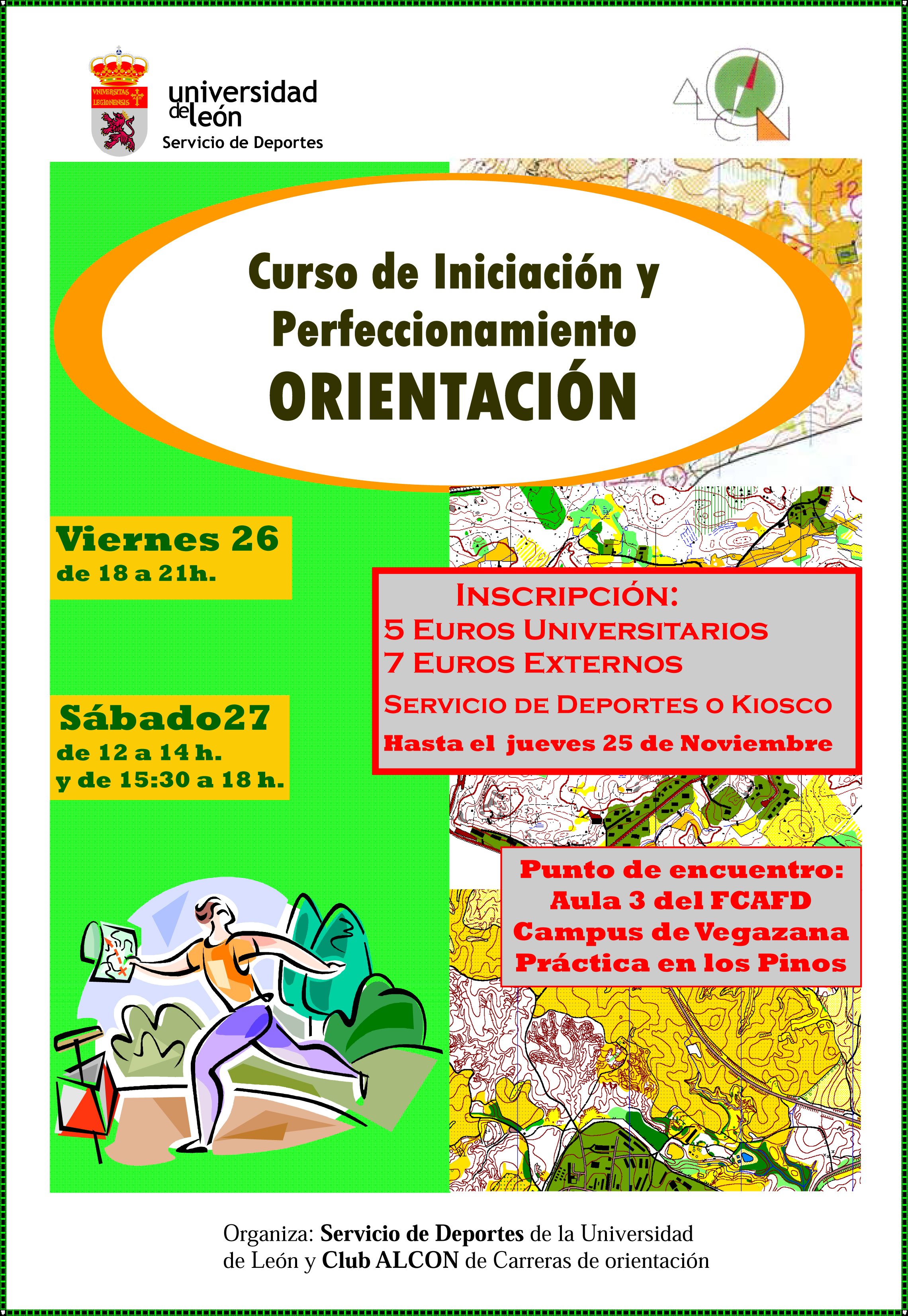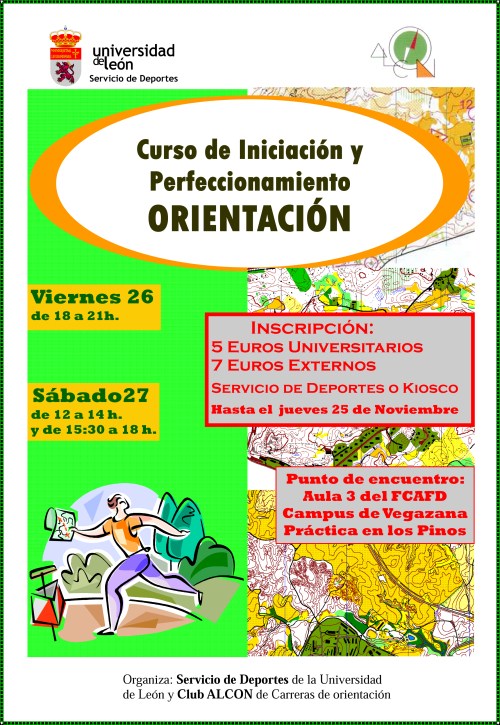 Estimados amigos: El Servicio de DEPORTES de la Universidad de León en colaboración con el Club ALCON tiene previsto realizar dos cursos de ORIENTACIÓN, uno de INICIACIÓN y otro de PERFECCIONAMIENTO, los próximos 26 y 27 de noviembre de 2010.