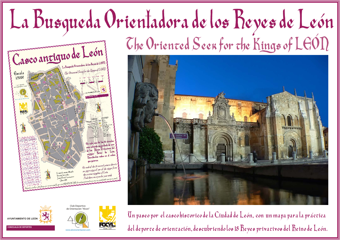Con el mapa, en el que están marcados 18 círculos numerados que indican la posición exacta de cada uno de los 18 Reyes privativos de la ciudad de León, realiza un recorrido por el casco histórico de la ciudad de León.